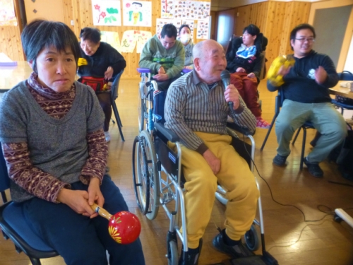 「歌」が大好きなお二人。「祝い船」「奥飛騨慕情」を大熱唱♪そして「ゆりかご」「もみじ」を歌いました。その後「たんぽぽ」を合唱。ぽれぽれ合唱団のオンステージとなりました。