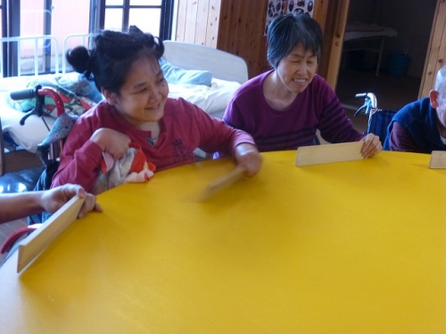 土曜開所日に、卓球バレーをしました。実は大得意のメンバーお二人をリーダーに、班分けして戦いました。いつもついつい白熱してしまうこの戦い・・・初めの球回しの練習もみんなつい本気打ちしてしまうので、練習にならずにいざ本戦へ。