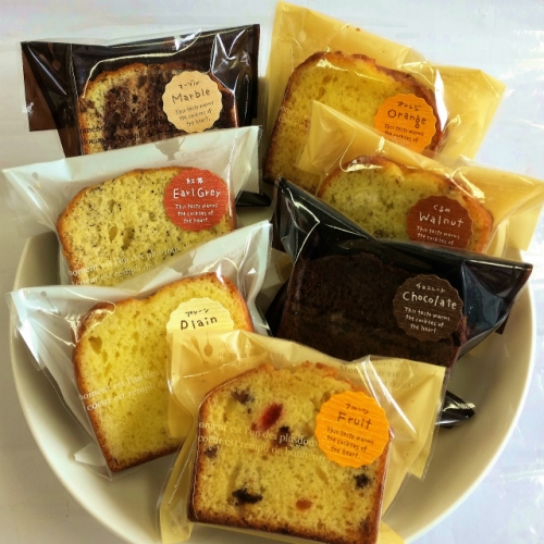 パウンドケーキ(チョコマーブル、アールグレイ紅茶、プレーン、フルーツ、チョコ、くるみ、レモン)7種入り
